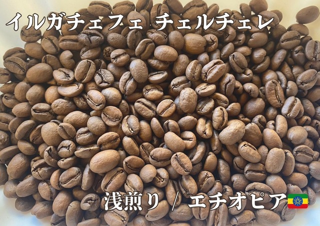 コーヒー発祥地 エチオピア イルガチェフェ地区のナチュラルモカコーヒー。 世界生産量第5位。 上品・華やか・フルーティ。 【生産情報】 チェルチェレは、エチオピアの首都であるアディスアベバから447 km離れた、ゲデオゾーン、ゲデブ地区に位置します。チェルチェレのあるエリアはゲデオゾーンの中でも最南端に位置し、標高が高く、土壌も豊かで、優れたテロワールを有するコーヒーを生産するエリアとして世界中のバイヤーからも認知されています。。 コーヒーチェリーは各農家のいわゆる”ガーデンコーヒー”と呼ばれる庭先の延長とも呼べる小さなエリアから収穫されます。このような小規模農家単位では、農薬は大変コストが高く、また標高も非常に高いため、虫被害も少なく、使われる機会すらありません。コーヒーの木以外の土着の木、食用果物の木々の枯れ葉や果実が天然のたい肥として機能し、土壌の栄養分が豊かな状態が保たれ、豊かなコーヒーチェリーの実りをもたらします。 また最近のスペシャルティコーヒーの需要の高まりを経て、こういった小規模な農家でもウォッシングステーション等の精選所から受け取る価格もかなり改善されており、生活の質が担保され、持続可能なコーヒー生産を続けられる土壌も整ってきました。 【生産地情報】 生産地 シダモ県イルガチェフェ チェルチェレ 精製 ナチュラル 標高 1800m-2200m 品種 在来品種 【産地国】 エチオピア 【焙煎度】 浅煎り(ライトロースト) 【商品特徴】 いちごやピーチのような果実感。濃厚なフルーツというよりは、フレッシュな果物を感じる印象です。 マイルドなボディ感があり、舌に軽く乗るようなコクと甘味が優しい味わいを感じます。 エチオピアモカらしい上品で華やかなフレーバーをお楽しみください。 酸味:◯◯--- 苦味:----- 甘味:○◯--- コクまろやか:◯◯◯-- キレすっきり:-----