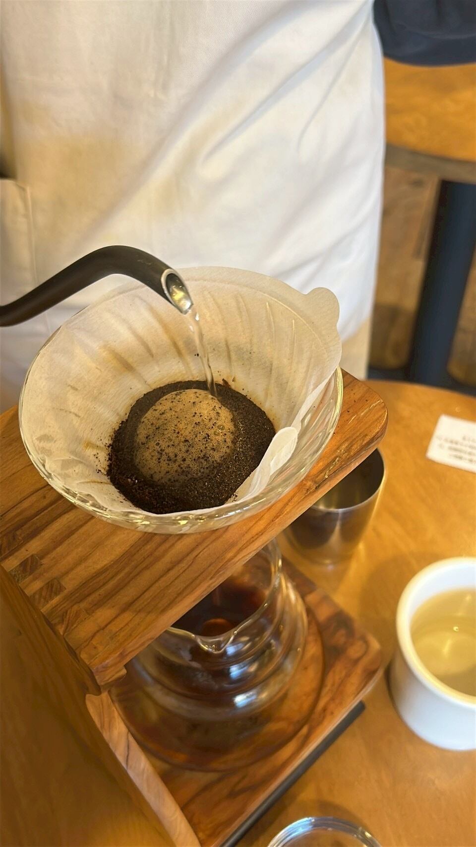 ⑤落ち切り後、抽出したコーヒーを攪拌して出来あがり。
