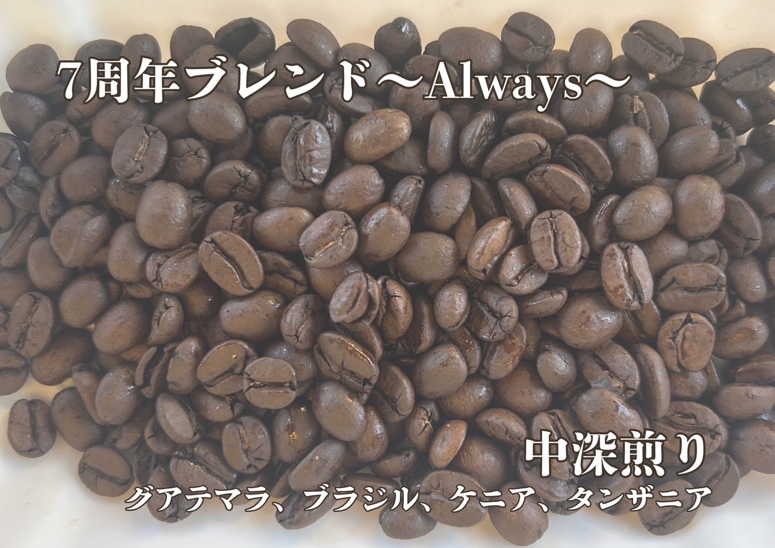 ふとした息抜きにそっと寄り添う7周年ブレンド今年も周年コーヒーをお楽しみください。