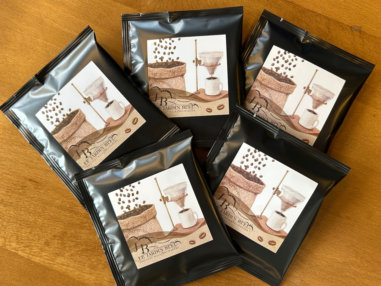食後のコーヒー、ケーキや焼菓子を楽しむお供に。今回、ル・ジャルダンブルーオーナー監修の元、何度も試作を重ねて作りました。